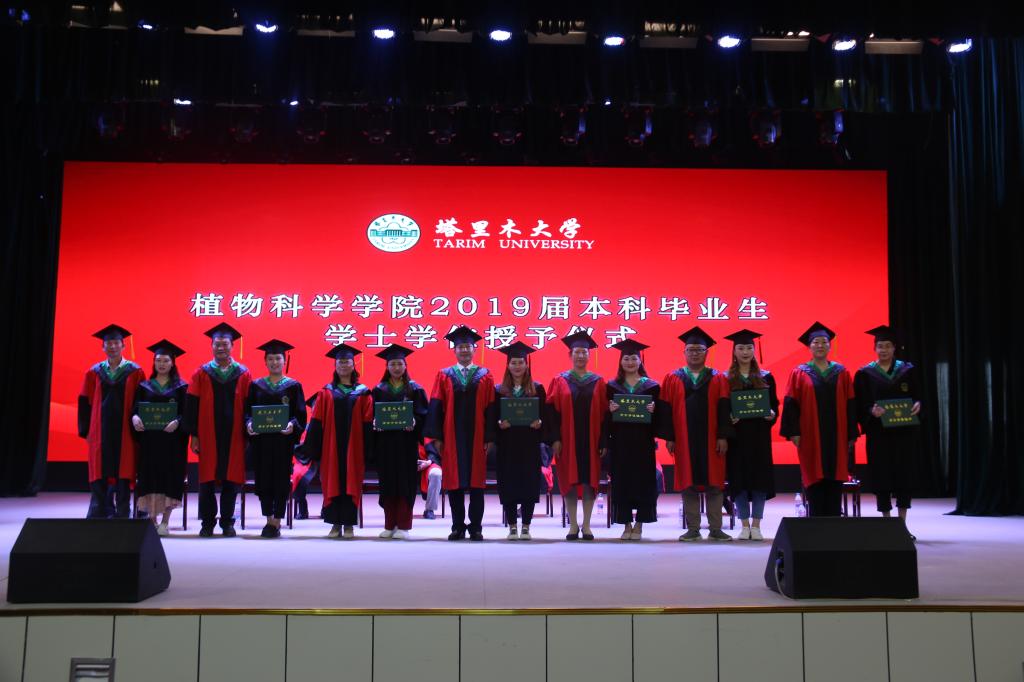 仪式在庄严的国歌中拉开序幕,学院党委书记蒋学玮宣读了《塔里木大学植物科学学院关于授予2019届本科毕业生学士学位的决定》,7名主礼教授为2019届282名毕业生受礼并颁发学士学位证书。