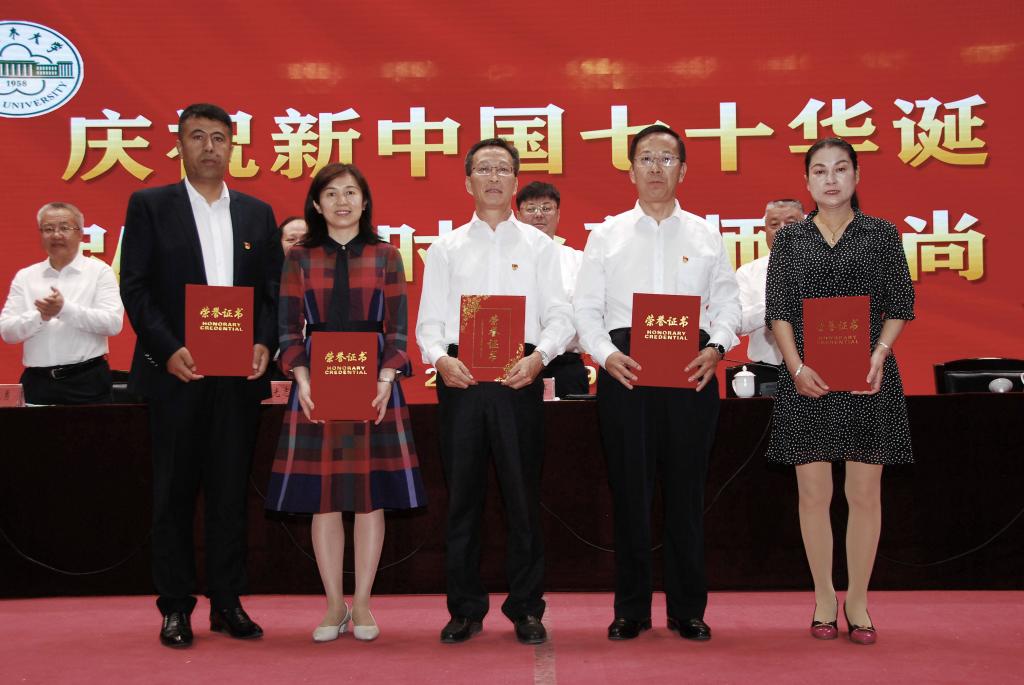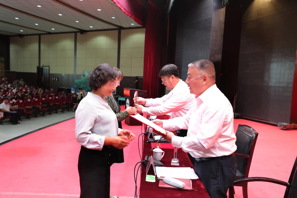 大会对荣获国家、兵团和学校各类先进集体和个人进行了表彰,单洪山宣读了人力资源社会保障部 教育部关于表彰全国教育系统先进集体和全国模范教师、全国教育系统先进工作者的决定,卢光志宣读了兵团关于表彰优秀教师和优秀教育工作者的决定,张利莉宣读了学校对从教满30年教师的表彰决定,与会领导为获奖集体和个人进行了颁奖,希望受表彰的先进集体和个人,在平凡的工作岗位上创造不平凡的业绩,展示新时期塔大教师和教育工作者崇高的思想境界和良好精神风貌。