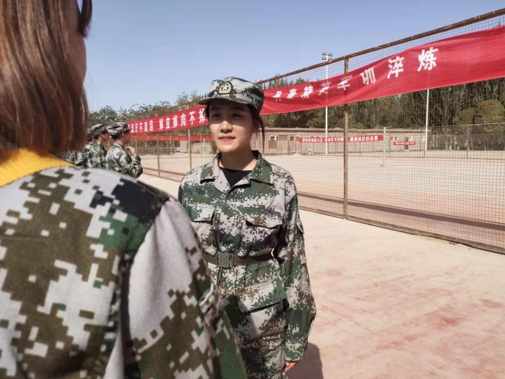 操场的绿茵和同学们的迷彩交相辉映,让同学们显得活力十足。教官们严格要求同学们整理军容、端正军姿,亲自示范,手把手纠正,一棵棵“小胡杨”正在接受军训的洗礼。