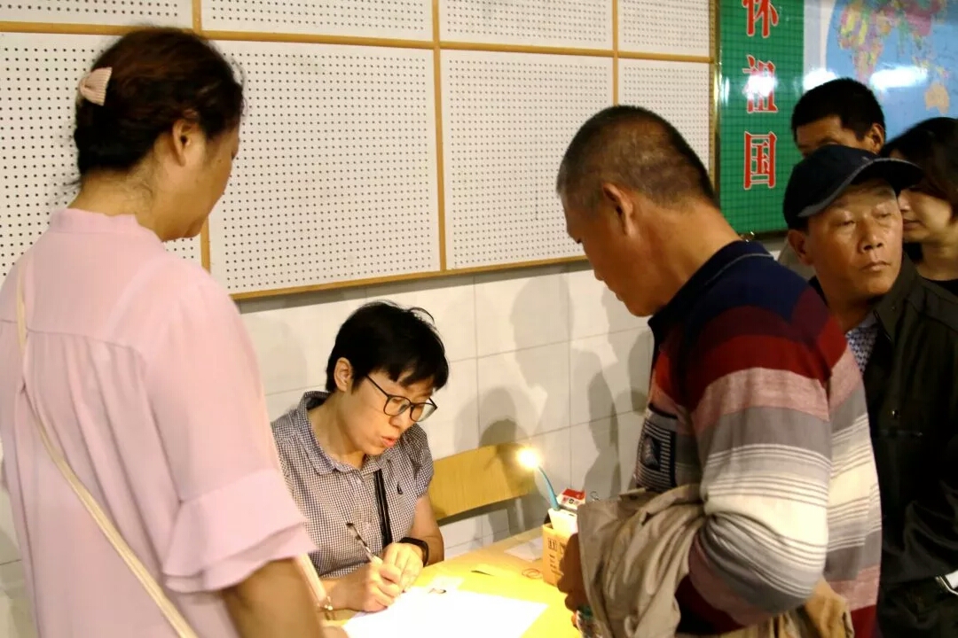 家长在排队进行登记