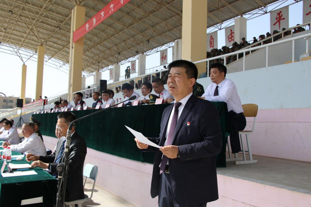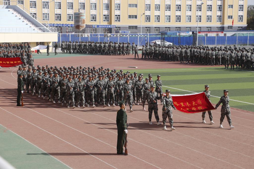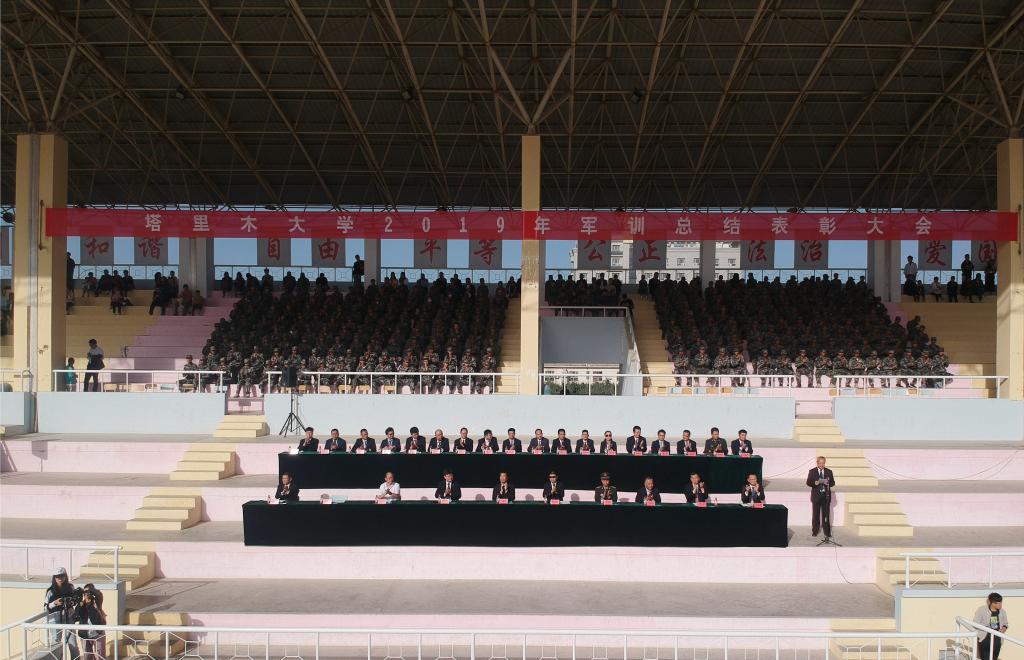 晴空万里,烈日高照。9月26日,在西区田径场上,5300余名2019级新生精神抖擞,整齐站立,用饱满的热情迎接领导和教官的检阅。上午11时,塔里木大学2019年军训总结表彰大会开始。