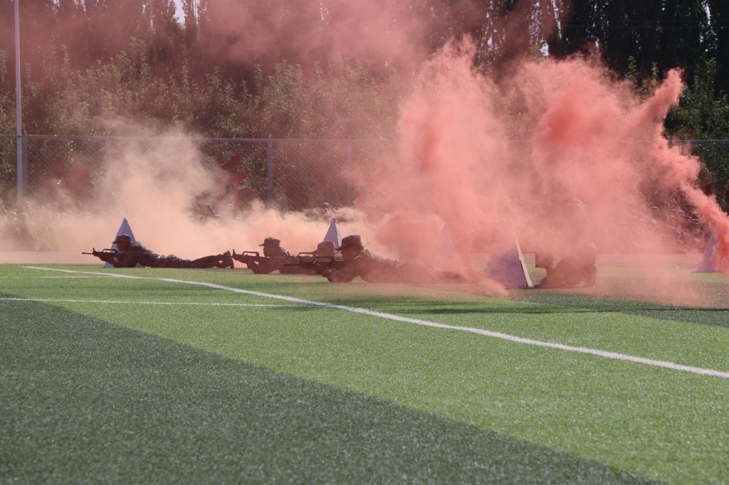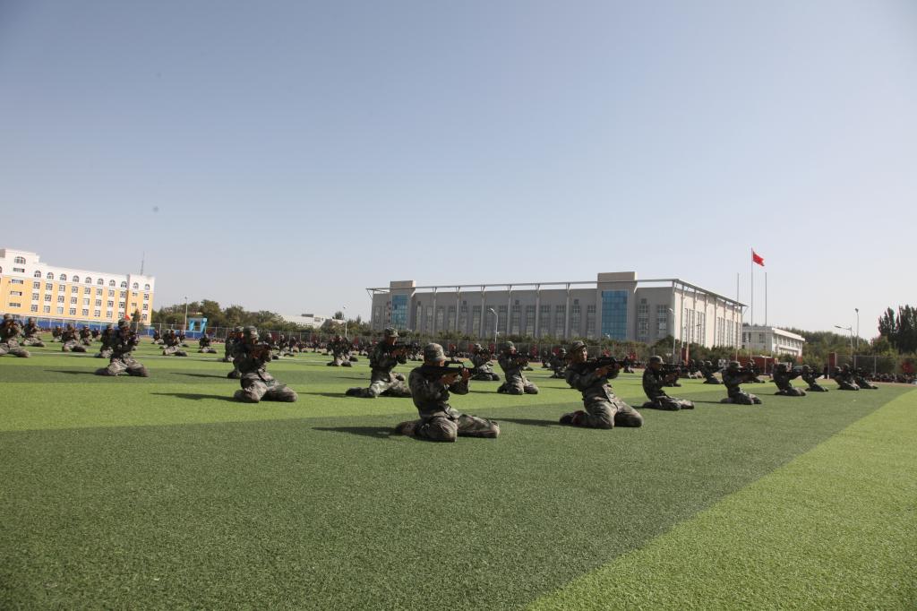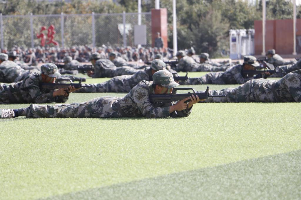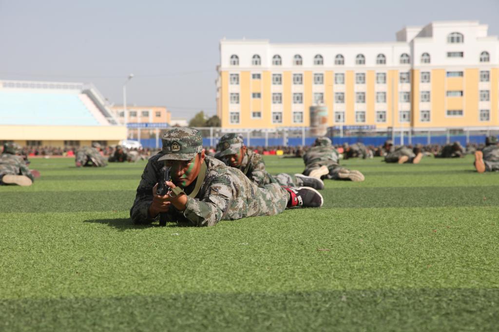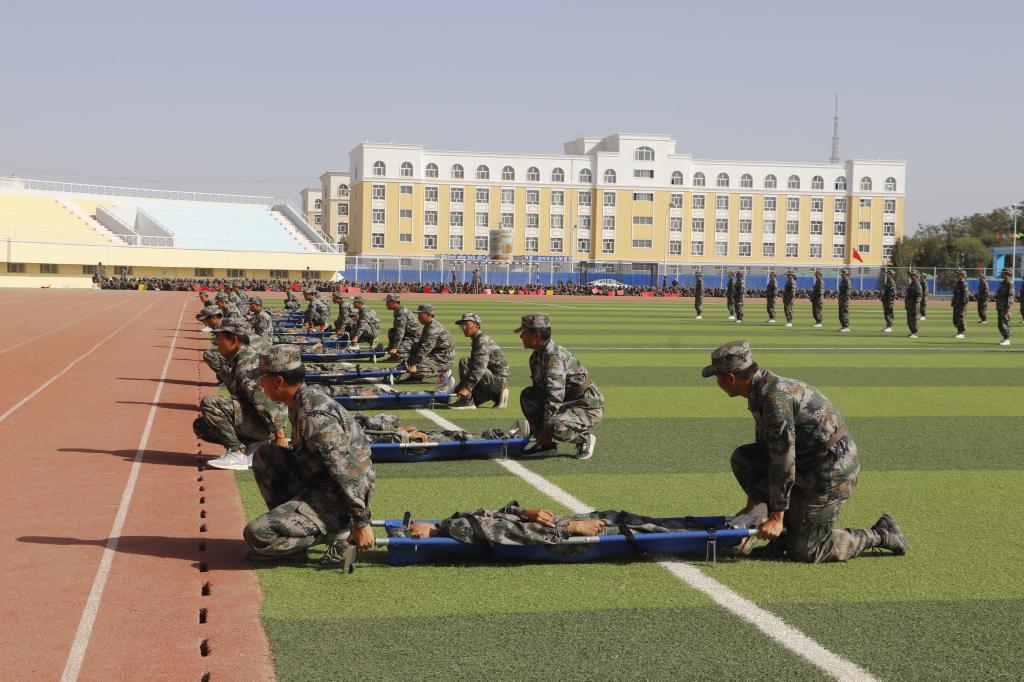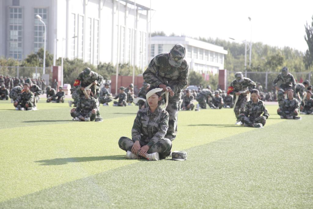 分列式后,军训新生进行了医疗救护、匕首操、擒敌拳刺杀操、防暴队形、战术动作和战术进攻汇报表演。场上队形变换迅速,井井有条,动作标准连贯,身手矫健。娴熟的战术动作是他们18天来严格训练、努力付出的结果,赢得了现场的阵阵掌声。