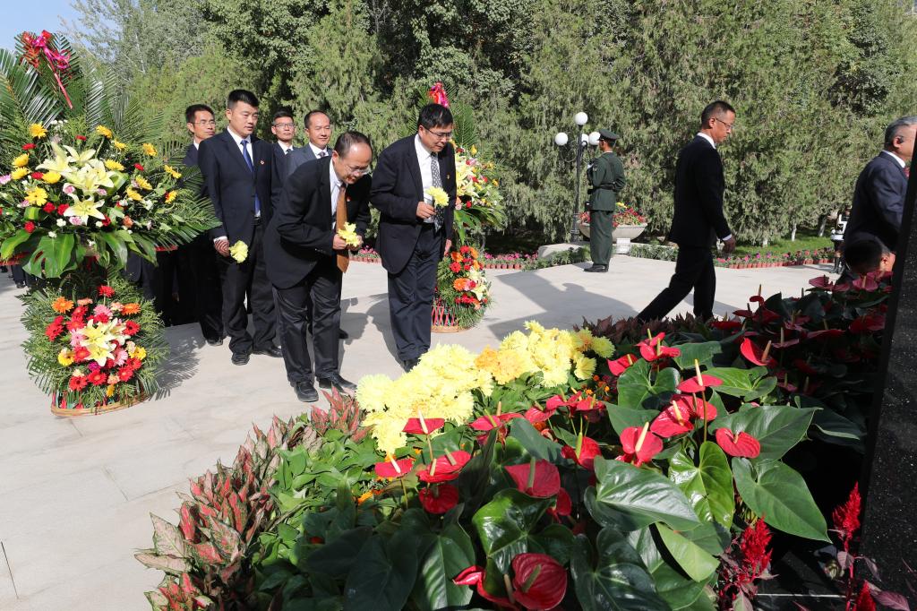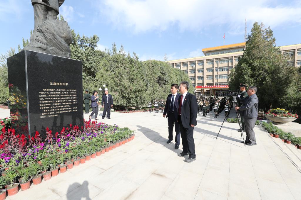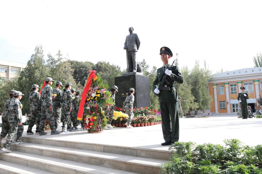 9月30日,塔里木大学红色文化广场,王震将军铜像巍然屹立在广场正中,师生整齐而立,庄严肃穆。塔里木大学向王震将军铜像敬献花篮仪式举行。缅怀烈士不朽功勋,传承弘扬胡杨精神。