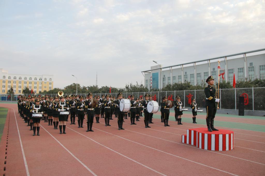 早上九点,军乐团奏响雄壮的国歌旋律、全体师生齐唱中华人民共和国国歌,鲜艳夺目的五星红旗冉冉升起,点燃了在场每一个塔大人的爱国热情。国旗飘扬,现场庄严肃穆,全体师生向国旗行注目礼。