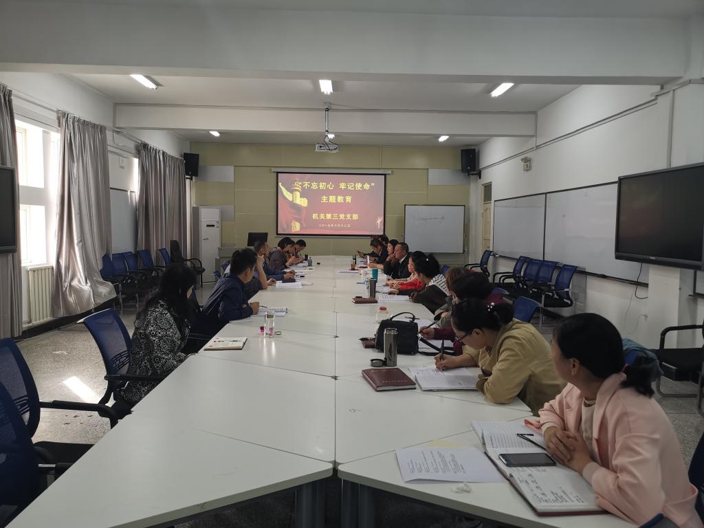 为扎实推进“不忘初心、牢记使命”主题教育,10月12日下午,机关第三党支部在行政楼410室开展主题教育集中学习。