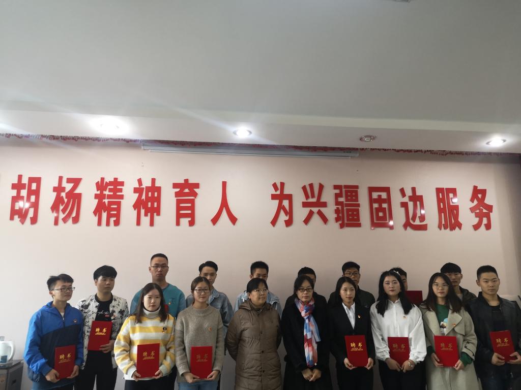 最后,张丽娟、杨全丽为16名党员学长颁发聘书。(文/王星原 娄珍珍 摄/晁锐)
