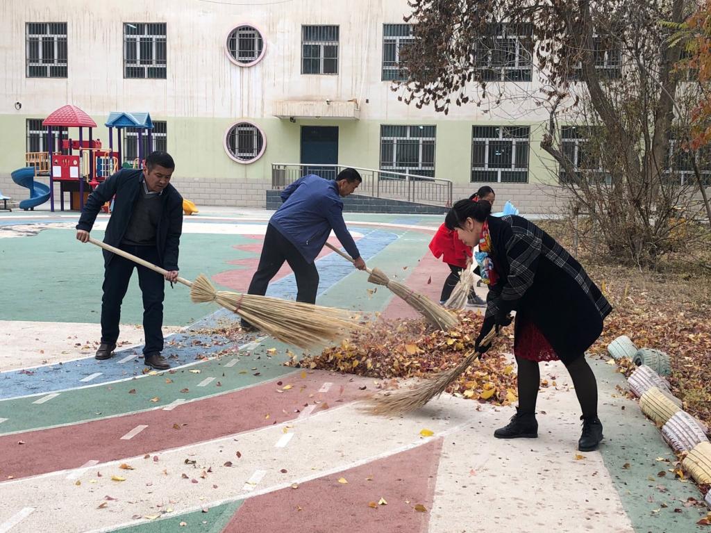 会后,全体党员来到幼儿园,开展志愿服务活动。大家干劲十足,互帮互助,清扫院子道路上的落叶及林带垃圾,不放过任何一个卫生死角,用身体力行的方式呵护着祖国未来的花朵,用志愿者精神照亮了孩子们美丽的成长乐园。