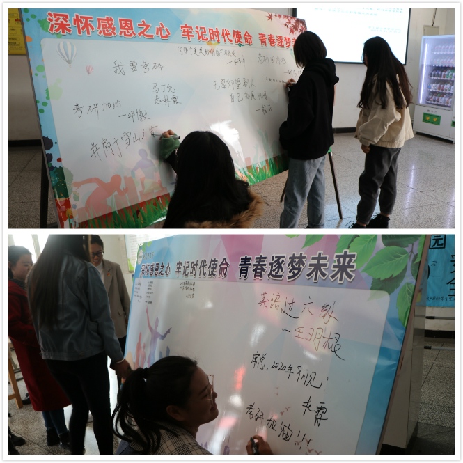 学院组织开展深怀感恩之心,牢记时代使命,青春逐梦未来签字活动,鼓励学生在签字板上写下自己的目标和梦想。以此来激励自己,勇敢的向目标前进。(文/常琳 摄/动科院团委学生会)