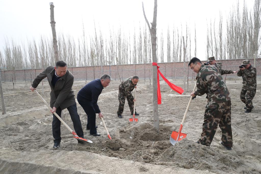 捐赠仪式后,单洪山一行同部队官兵撸起衣袖,扛起铁锹,共同种下了友谊之树,并考察了部队训练、学习、生活等情况。