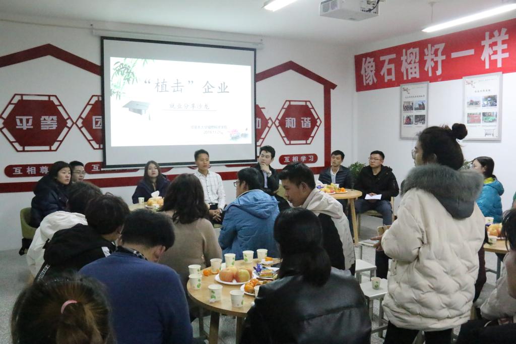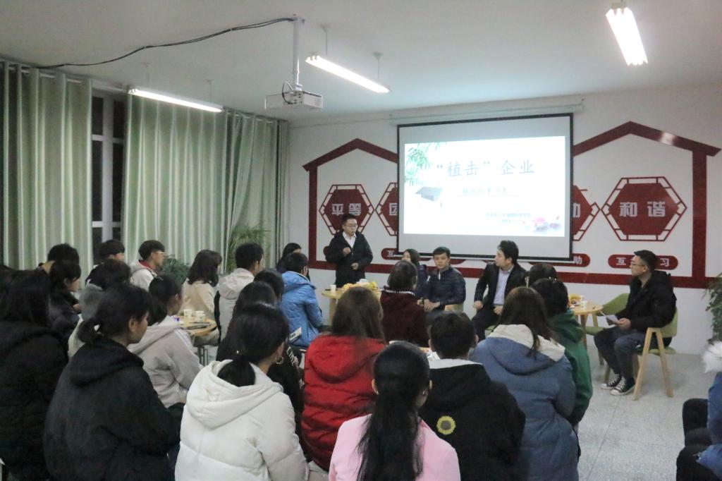 为使同学们进一步了解当前社会对人才的需求及如何在就业时脱颖而出,11月21日晚,植科院在民族团结教育示范基地举行“植击”企业就业分享沙龙。
