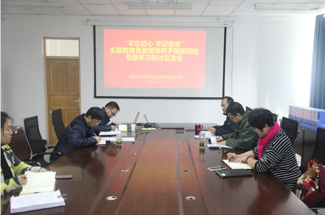 根据学校“不忘初心、牢记使命”主题教育安排,11月29日,植科院党委领导班子召开民族团结专题学习研讨交流会,会议由学院党委书记蒋学玮主持,在农科楼203召开。