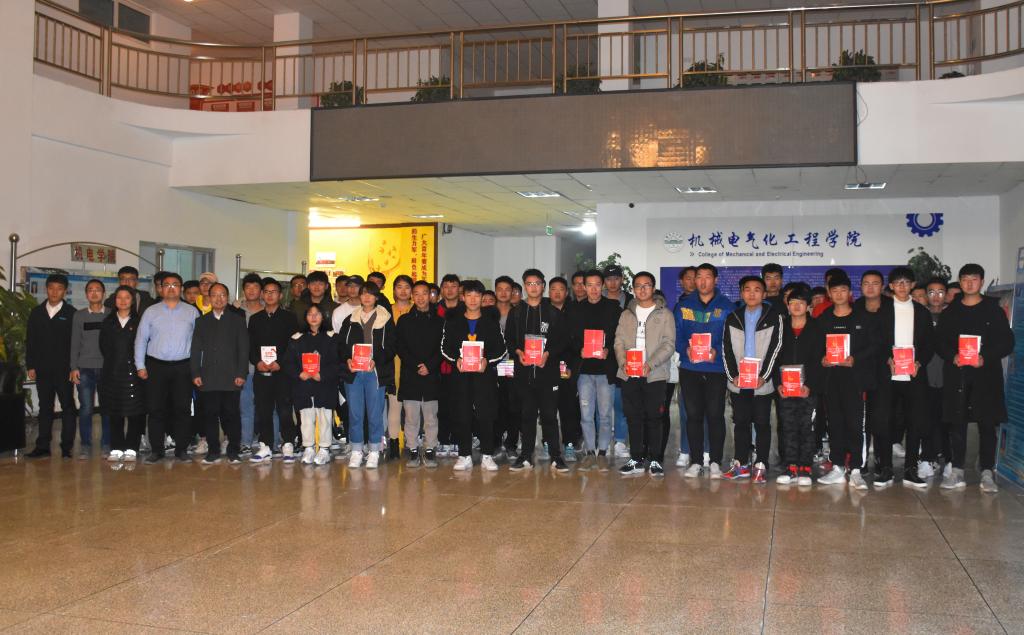 为用心、用情做好人才培养工作,使大学生养成良好的阅读习惯,12月6日机电院举办“书香机电”授书仪式。学院党委副书记胡松林、辅导员代表及各班级代表参加。