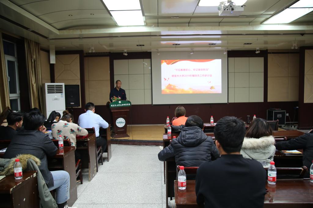 12月27日下午,党委学生工作部开展了以“不忘教育初心、牢记使命担当”为主题的2019年辅导员工作研讨会,党委学生工作部部长孟琪、副部长陈蕾、各学院副书记及全体辅导员参加了此次研讨会。研讨会由陈蕾主持,在逸夫实验楼501举行。