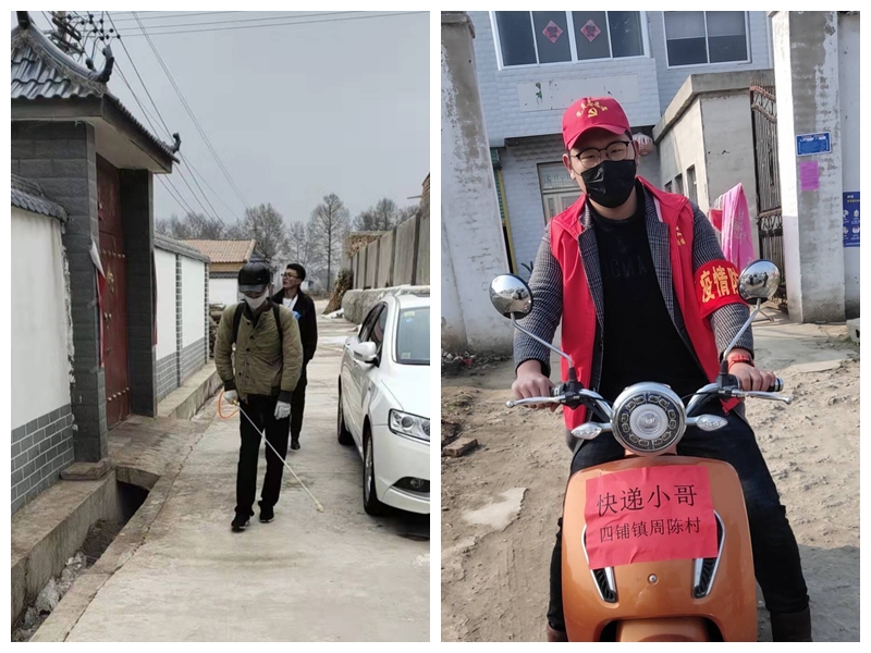 “现在是非常时期,人人都要为抗击疫情作贡献。我也是村子里的一份子,应该为村子出一份力。希望有更多的志愿者加入进来,齐心协力早日打赢这场疫情防控阻击战。”国贸20班任小刚第一个报名参加疫情防控志愿服务队,他和同村的几个大学生负责村子里消毒清洁工作。