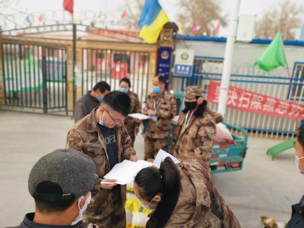 他一遍遍重复询问,一行行登记信息数据,叮嘱连队职工群众戴口罩、勤洗手、多通风、少出门、少聚集。