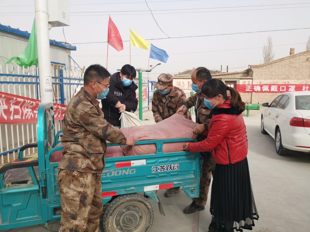 抗疫物资匮乏,秦泽洪带着工作队、连队干部和家人,一起往返上百公里,四处寻求抗疫物资支持,并亲自上门发放到连队职工群众手里。