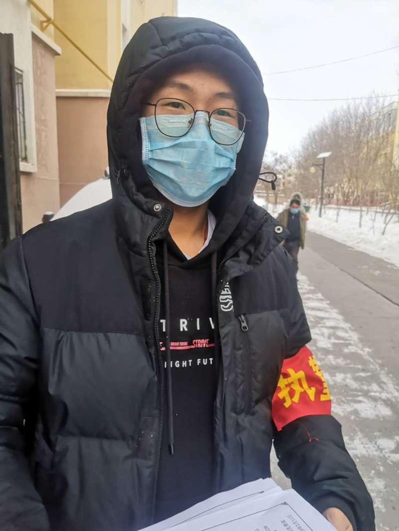 艺术设计21班范瑞鹏,家住石河子市,积极参与社区志愿者,负责为社区居民送生活用品、测量体温等工作。从2月10日参加志愿服务至今,他每天上午10点开展入户走访,面对个别居民有困难的时候,他热心帮忙解决困难。他说:“作为一名党员,在志愿服务中,我认识到了基层工作的辛苦,每一个基层工作者都应该被尊重,他们都是最伟大的战士。”