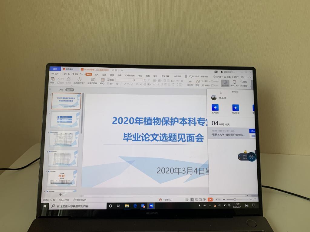 为完成2018级植物保护本科生毕业论文选题,3月4日下午植物保护专业师生在腾讯会议平台开展毕业论文课题选题。植物科学学院党委副书记朱天生,植物保护专业全体教师,植物保护2018级1班、2班,植物保护民22-1班等全体师生共123人参加。