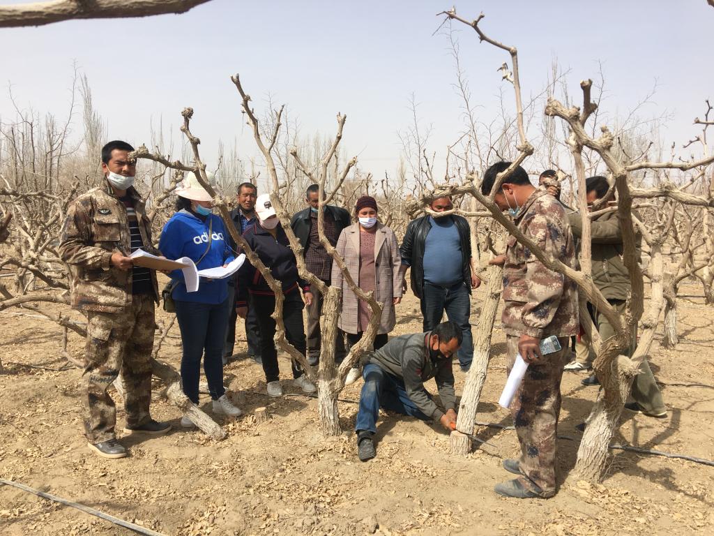 3月13日,塔里木大学植物科学学院园艺林学系教工党支部科技特派员吴翠云、王新建等11人,到皮山农场开展科技服务,进行树种统一、疏密改造、树形修剪、增施有机肥技术培训指导,检查核实职工技术措施落实情况,针对生产中出现的问题进行指导,协助皮山农场实施林果业提质增效项目。本次需要完成10个连队,6700多户,共计22488.3亩的核查工作。