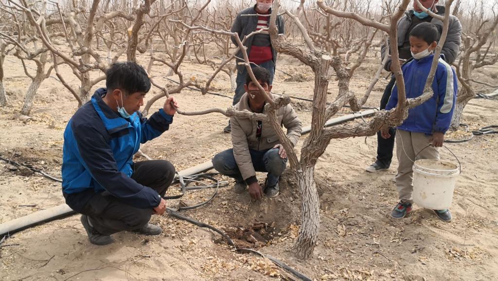 3月17日至19日,科技特派员在皮山农场十一连指导职工枣树疏密。 |