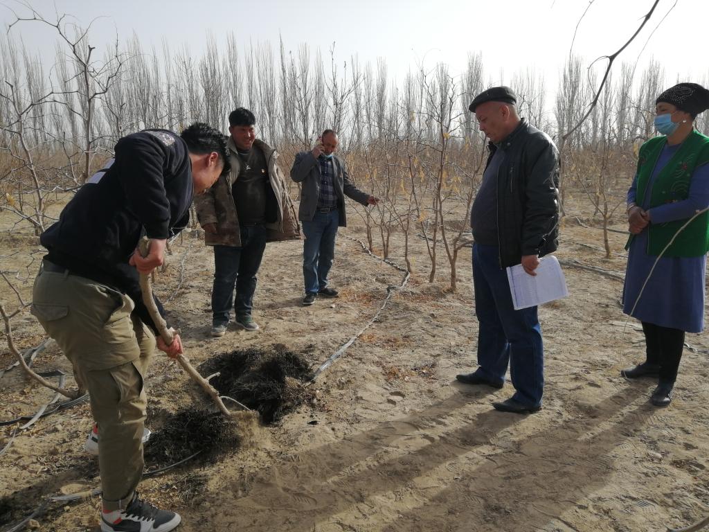 3月17日至19日,科技特派员在皮山农场三连检查增施有机肥落实情况。 |