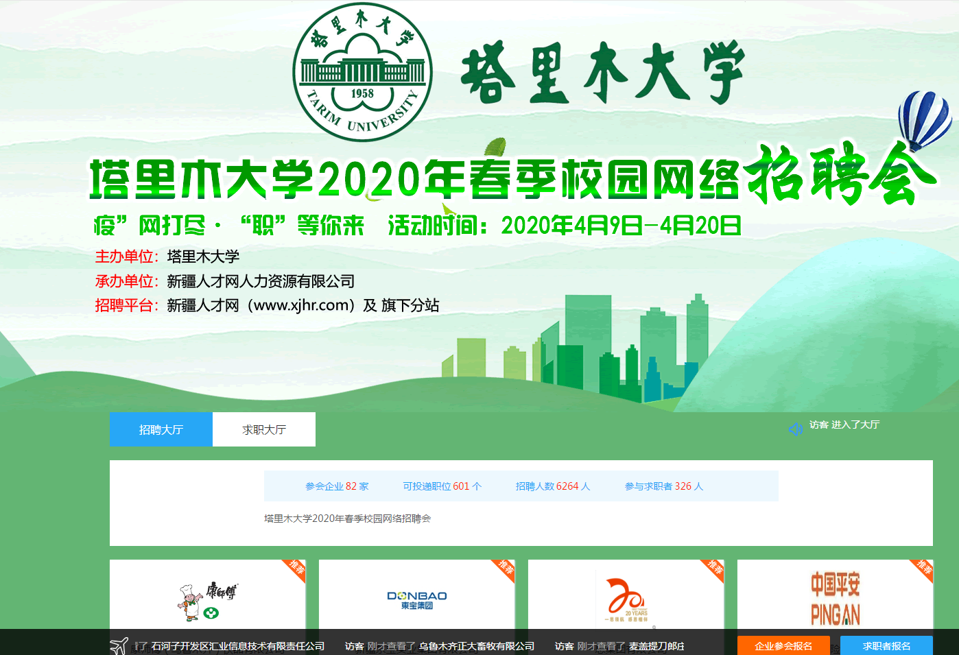 截止3月30日,学校累计通过微信、QQ群等线上平台发布各类招聘信息524条,提供招聘岗位6000余个。并积极推送就业政策和线上就业指导课程,积极组织学生参加兵团“百日千万网络招聘专项”活动。将与新疆人才网合作于4月9日-20日开展主题为“疫”网打尽·“职”等你来的“塔里木大学2020年春季校园网络招聘会”。(文/摄 孔黎)