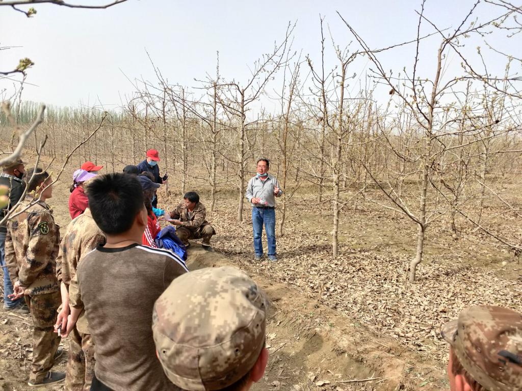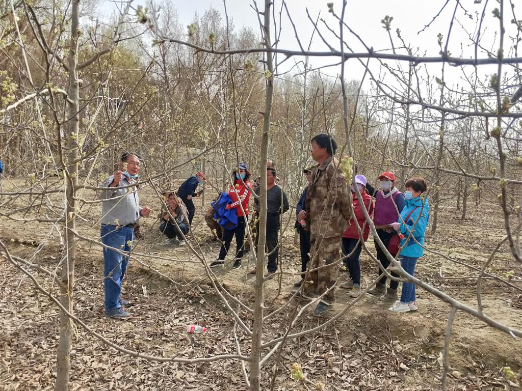 11团1连“访惠聚”工作队队长徐崇志、11团6连“访惠聚”工作队队长秦泽洪、连队干部和种植户一起参加培训。张教授着重对梨树在花期中如何更好的授粉坐果提出具体建议:一是在主干型香梨树干顶部选取一枝嫁接砀山梨、早熟梨等品种;二是利用“挂花枝”的方法;三是花前施肥放水;四是购买花粉实施人工授粉等,提高主干型香梨授粉坐果率。