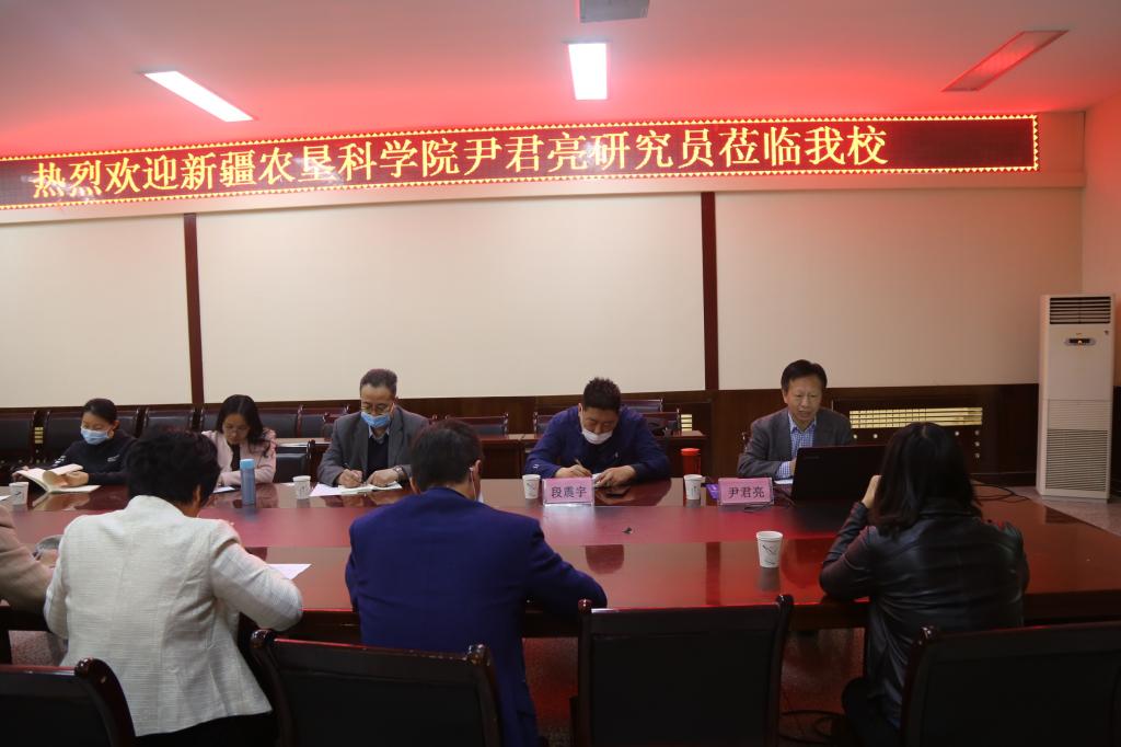 4月10日至11日,应塔里木大学动物科学学院邀请,新疆农垦科学院党(院)办主任尹君亮研究员和科技成果推广处副处长段震宇来我校,开展兵团2020年新立项重点领域科技攻关计划项目“南疆牛羊特色饲草料资源开发高效利用推广的示范”项目执行前调研和交流工作。调研期间,尹君亮研究员结合自己多年的项目申报及管理经验,作了题为《科技项目选题申报和实施》的学术报告,从项目选题来源、申请书撰写、可行性研究报告的撰写、项目的实施、结题材料组织等方面进行了深入阐述。