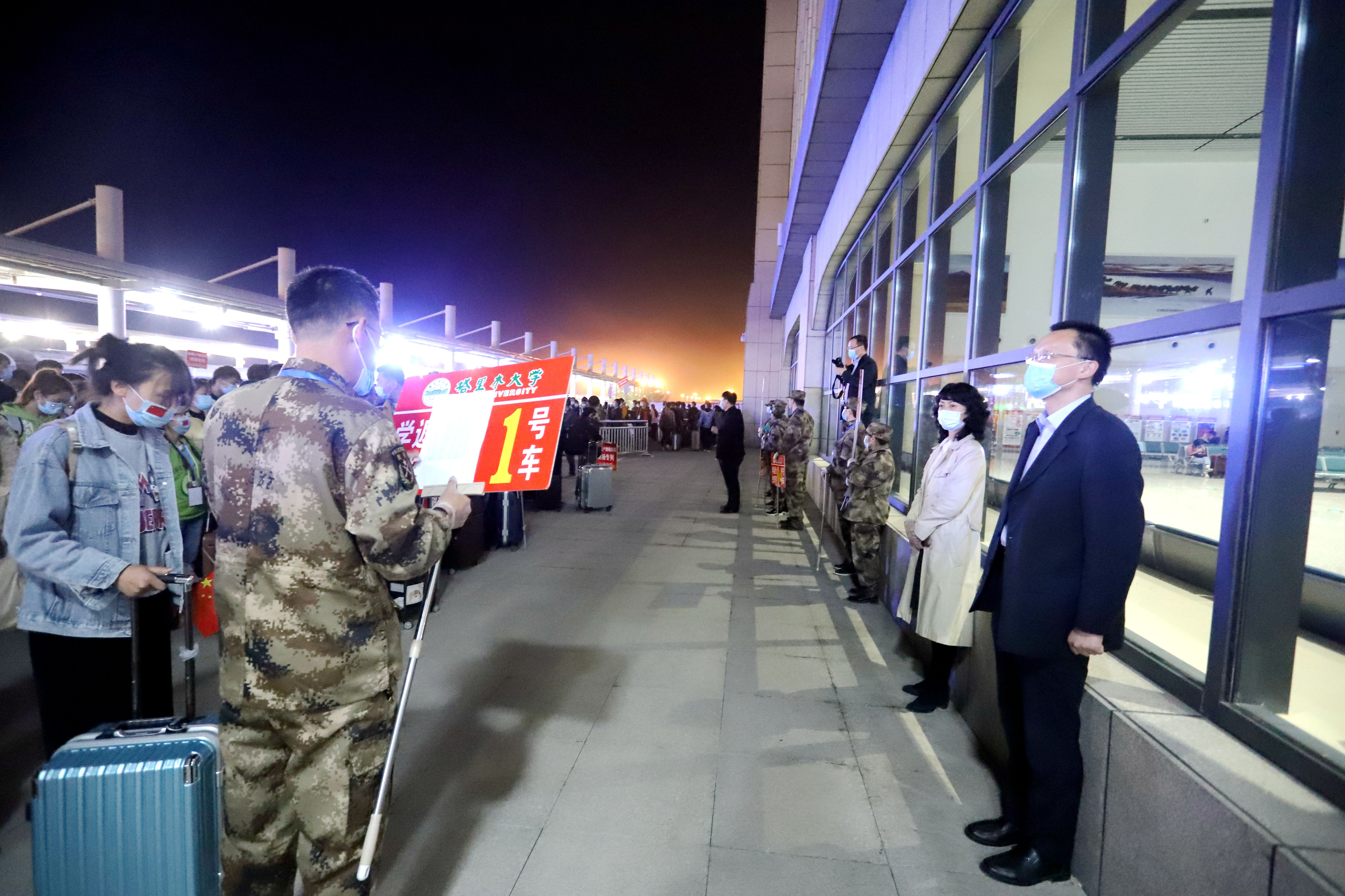 17日,兰州火车站激动了,因为塔大胡杨学子们来了。迎着西行的春风, 乘上开往春天的专列,踏上返校复学的温馨之路。