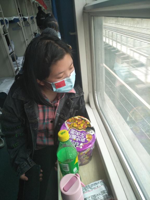“上车前领取了专列车票,和同学们一起唱《我和我的祖国》《光荣塔大》,我感到十分自豪和骄傲。在上车前我打电话给父母报了个平安、和小伙伴们打电话告了个别。一路上,虽然有点累,但我很兴奋、很激动。很享受此次的乘车之旅,除了吃、睡外,还和小伙伴聊天,认识到了很多有趣的朋友,我很开心,也很安心。静等今晚返回我向往已久的塔大,很期待开始新的校园学习生活。”汉语言文学2019级冉文博同学说。