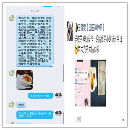 每天从早晨8点开始,楼层长们就开始忙碌起来,与同学们深入交流,一日三餐及时分发配送给学生并引导学生洗澡、打开水、上卫生间等;为身体不舒服的同学熬制并送姜汤;落实早晨、中午、晚上“一日三次体温测量”;为返校学生过生日;有的楼层长老师还要上网课,一整天的工作安排得满满当当。