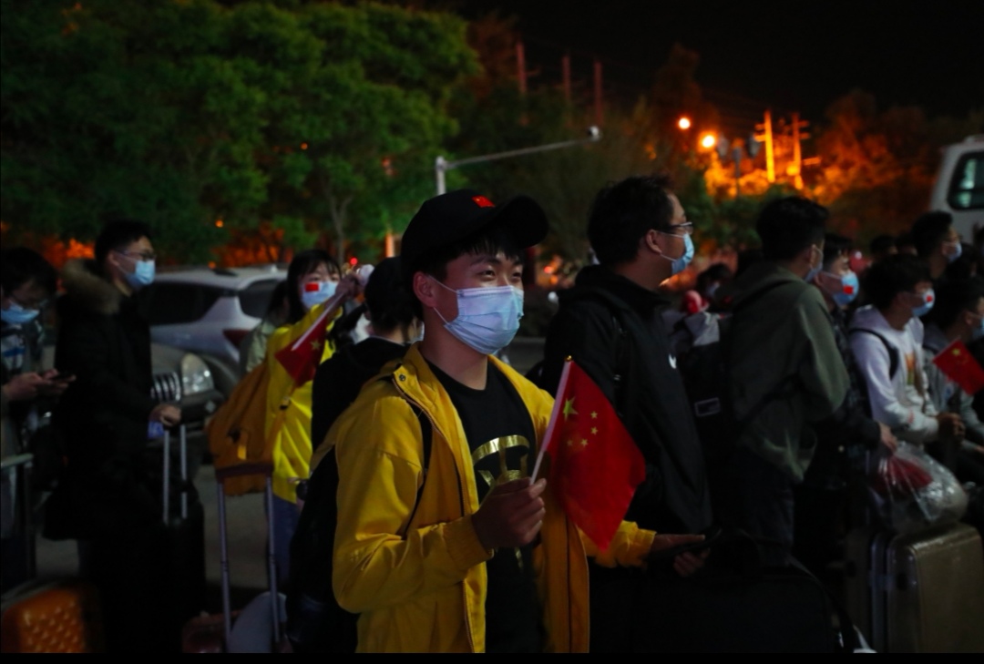 2020年4月23日晚上10:00,疆外返校学生乘坐大巴车,来到阿拉尔市各宾馆休息。