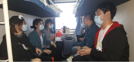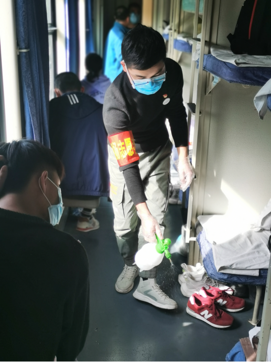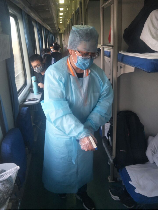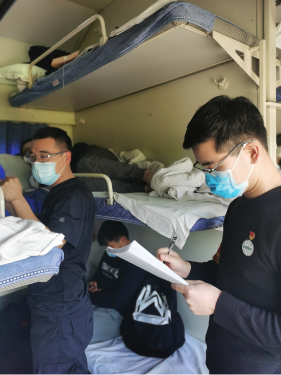 为保障学生安全健康返校,工作组严格执行火车防疫要求,积极配合列车工作人员做好各项防疫工作,并准备了防疫中草药和常备药品,发放医用口罩和防疫药品。