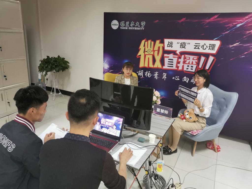 为进一步创新网络思政工作模式,引导大学生积极健康生活,4月25日晚,在学校党委的大力支持下,由学生工作部倾情打造的全新栏目塔大微直播战“疫”云系列网络直播正式上线,第一期战“疫”云心理活动由心理中心夏慧铃担任主播,学工部思政科时学梅作为嘉宾,以趣味互动讨论形式开展。直播时长65分钟,吸引了8509名学生观看,135562次点赞。