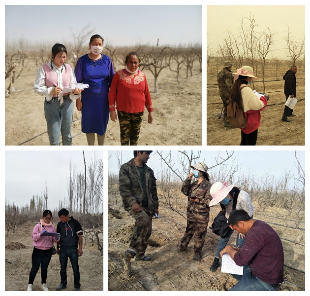 研究生们跟随指导老师深入皮山农场各连队,利用专业优势,协助指导职工实施“统一树种品种、减密、降高、增施有机肥”等各项提质增效技术、检查职工技术落实到位情况,并汇总每天的核查数据。一个多月来,无论风沙雨天,每天行走在万亩枣园中,对皮山农场10个连队7000余户职工22000余亩技术实施林果面积进行技术指导和检查,每天工作八、九个小时,有效地促进了各项技术的快速精准实施。研究生们认真、务实的精神,感动了皮山农场的领导,十四师党委常委、皮山农场政委闫志顺说:“塔大的老师和研究生,真正地把研究论文写在了南疆的大地上!”
