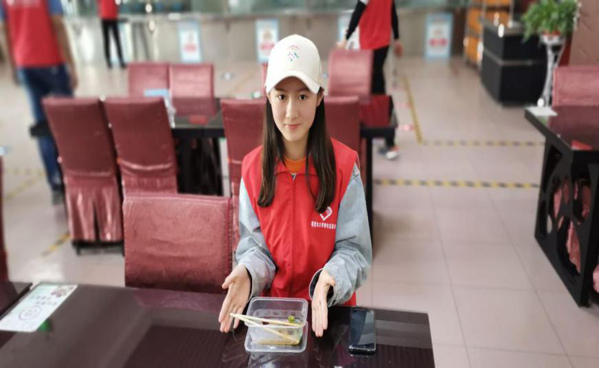 志愿者徐云慧说“现在疫情还未全胜,我们更加不能浪费粮食。希望‘光盘行动’能影响更多的同学,让节约成为一种习惯。”