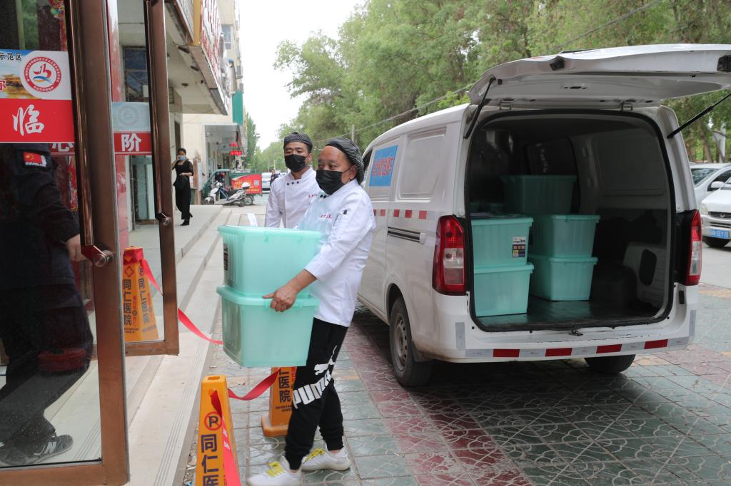 为科学合理给师生供应一日三餐,让师生们吃上热饭,分区划片供餐,按照东区、西区,宾馆入住人数分布调配,建立起协调联动、运转高效的供餐服务团队。