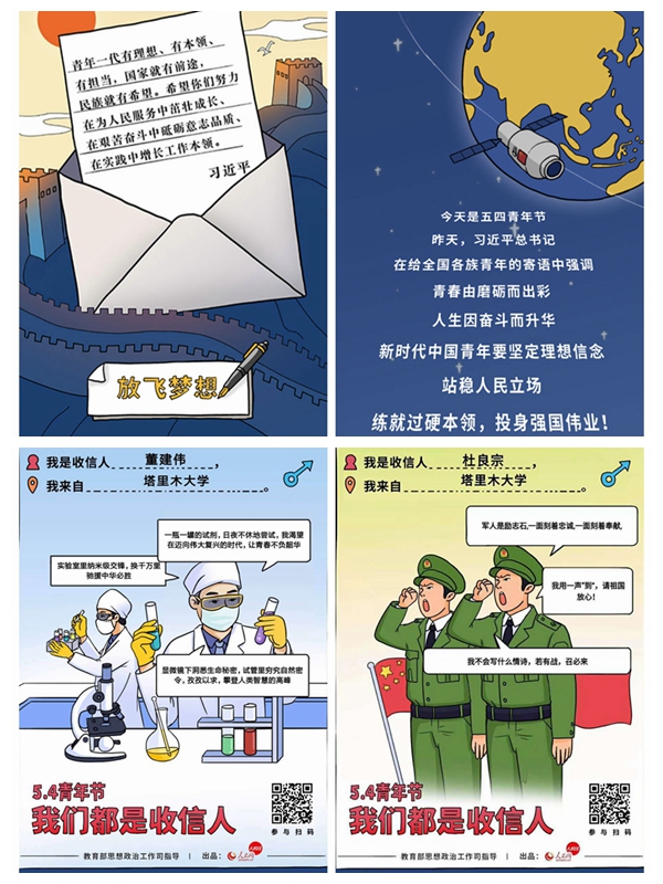 用知识缝制铠甲,以担当兴疆固边,在为人民服务中茁壮成长、在艰苦奋斗中砥砺意志品质、在实践中增长工作本领。作为胡杨学子们,我们都是收信人,更是答卷人,要用青春践行五四精神,用汗水浇灌胡杨意志。(文/边梅娜 周传荣)