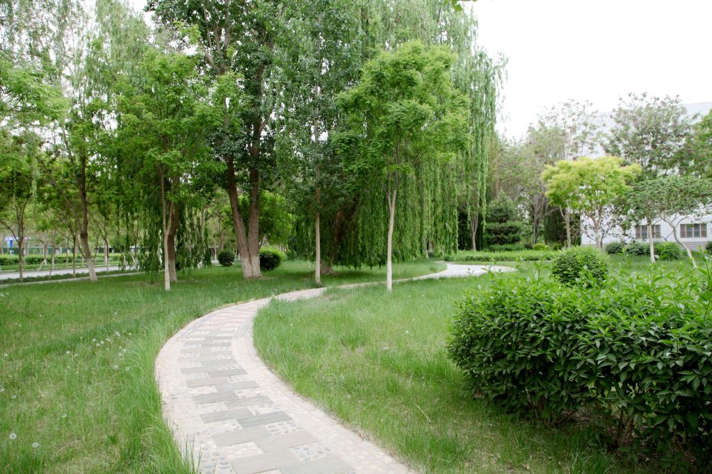 行政楼前林荫小道略显幽静,垂柳于小道两侧形成天然树帘。草坪上零零散散的蒲公英,在不经意间随风飘散,引着我们的思绪飘向远方。