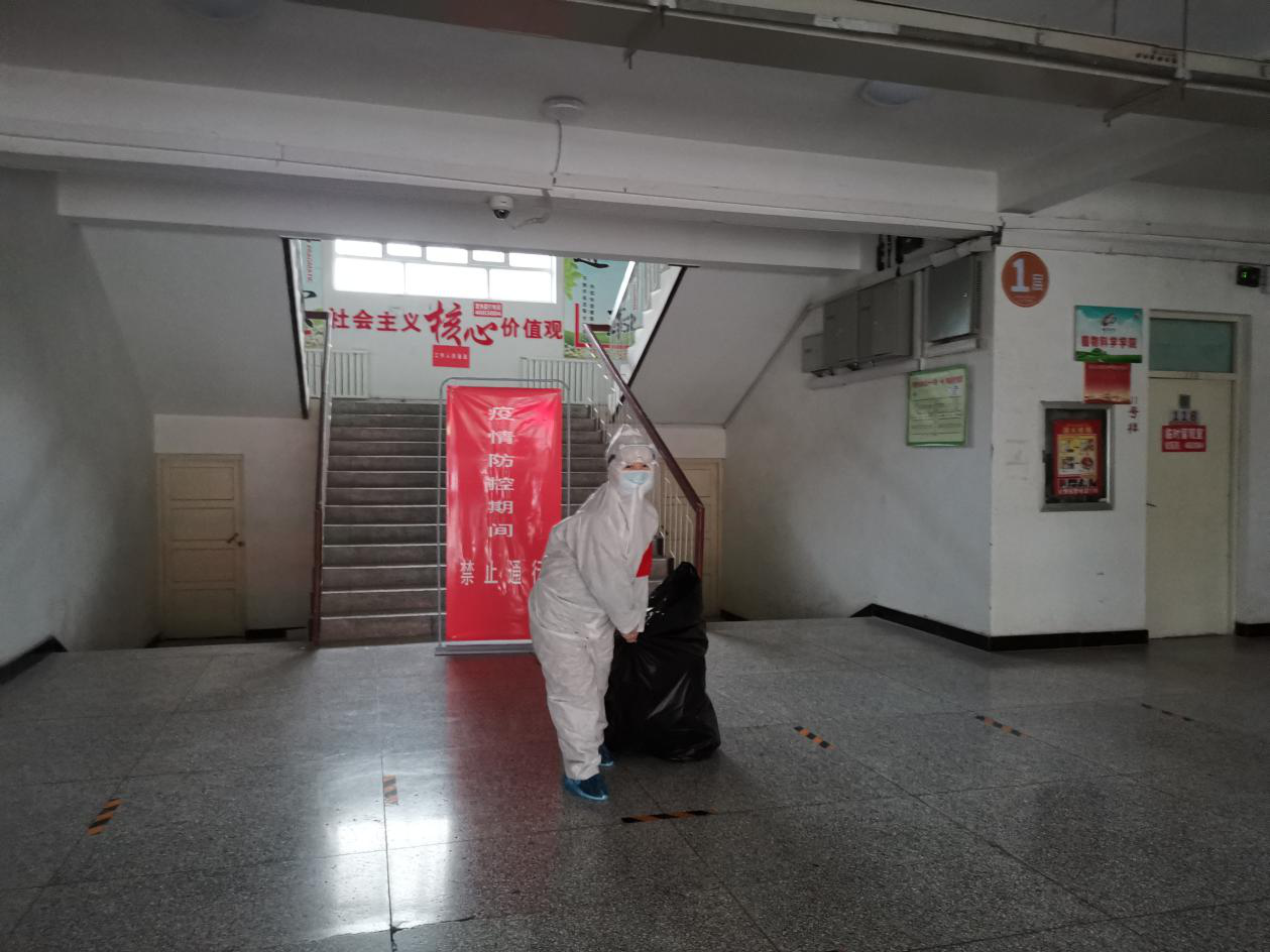 由于东区11号宿舍楼,入住学生多,工作量大,曹琦还主动帮助其他楼层的老师搬运饭菜、生活用品和清运垃圾。