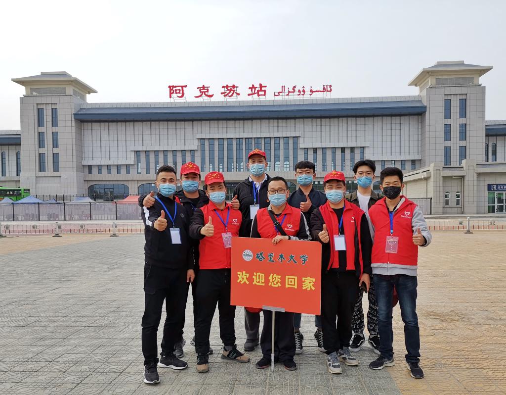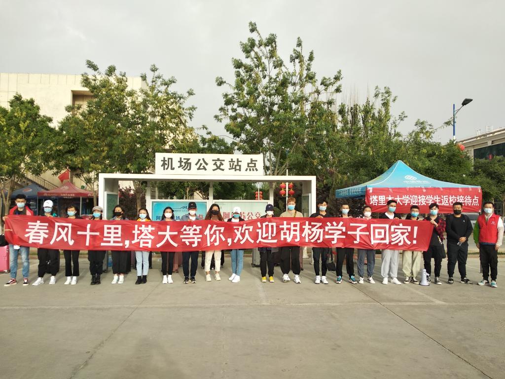 走进火车站和飞机场,“春暖花开,塔大接胡杨学子回家”“塔里木大学欢迎小胡杨回家”等标牌、横幅非常醒目。