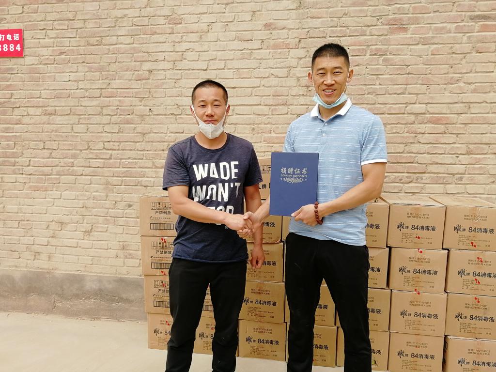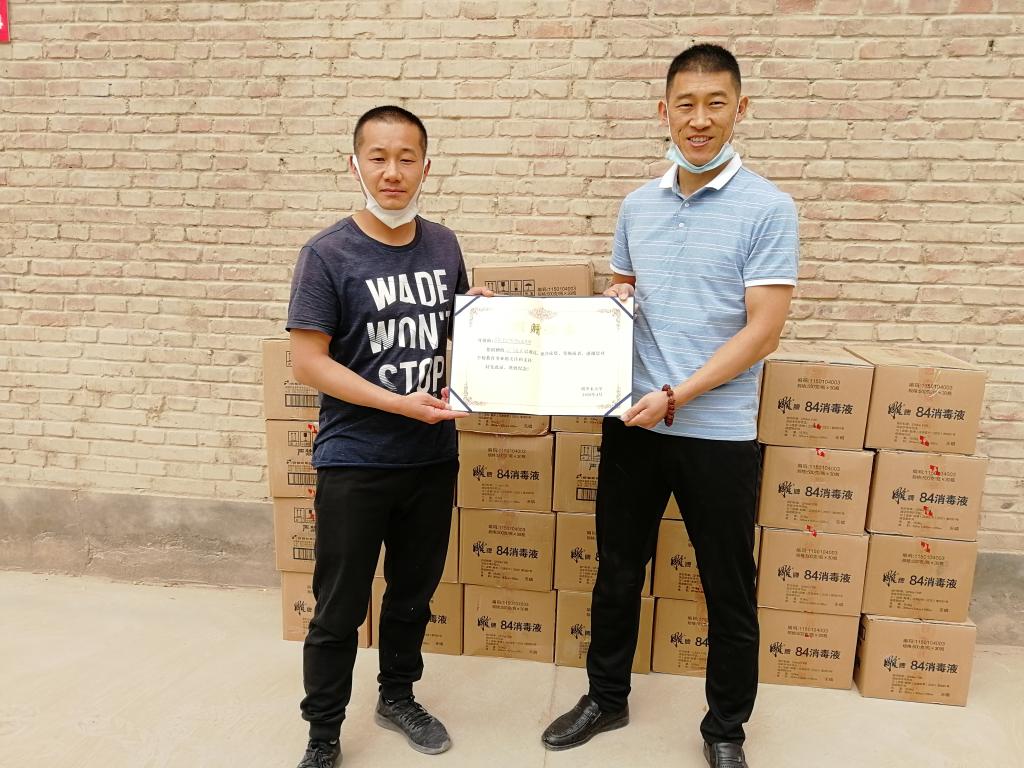 5月11日下午,阿拉尔市十团恒运批发部负责人代前运向学校捐赠30箱84消毒液,全力支持学校防疫抗疫工作。