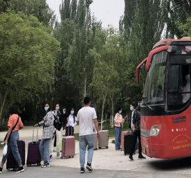 王鹏飞在接返校学生