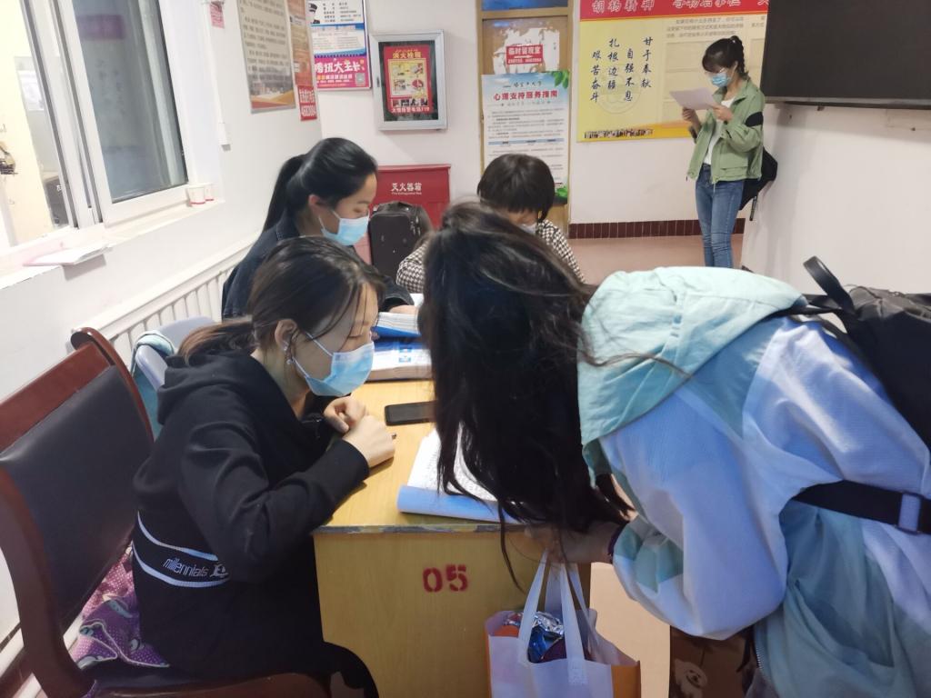 为保证疆内学生有序进入校园,动医支部党员联合宿管科、学院学生会在男、女生宿舍楼大厅为返校的疆内学生做核酸检测、消杀、信息登记、入住手续办理等工作,组织返校学生有序进入宿舍楼。在此期间大家认真负责、互相配合,各项工作有条不紊。支部党员江慧青说:“大家虽然日夜轮班很疲惫,可想而知老师们一直坚守一线是多么的辛苦。有学校的精心安排,老师们的暖心守候,同学们太幸福了。”