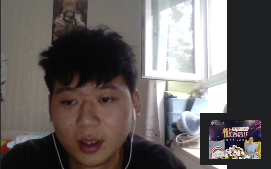 直播第一环节,学霸分享成长之路。王路生以总分600分的高分成绩,一次性通过大学生英语四级的考试。“只有珍惜当下,才能赢得未来”王路生说。学习上,王路生对自己的要求非常严格,海量刷题,调整心态是他能够一直高效率学习的法宝。只顾自己学习好?不!担任班级学习委员的他,对于班级的管理也毫不松懈,组织班委制定班级管理制度,严格按照制度办事,让班级整体成绩大幅度提高。
