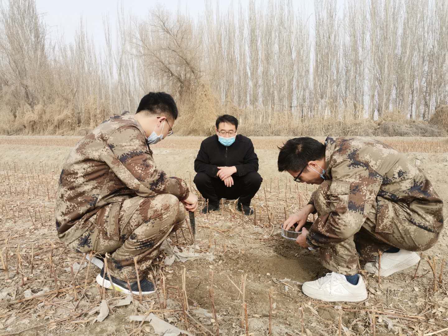 为了做好兵团农田残膜污染第三方科学监测工作,我校农田残膜污染综合治理课题组在兵团重点研发计划项目《农田残膜污染物联监控关键技术研究与示范》(项目号:2019AB007)的资助下,以兵团农业局下发的《兵团农田残膜回收利用整团推进工作方案》为依托,选取第一师9团、第七师130团作为整团推进第三方监测示范点开展科研工作。特别是在疫情期间,项目负责人王旭峰教授、胡灿老师等带领课题组对第七师130团、第一师9团开展残膜污染治理整团监测评价工作,取得了阶段性成果。