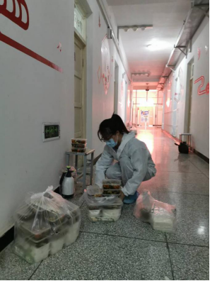 作为楼层长,她每天负责学生的一日三餐。“当把餐送到楼里的时候,我们要给学生分发下去,随着回到宿舍的学生越来越多,每天的放饭、收垃圾也成为了一个很大的工作量。”
