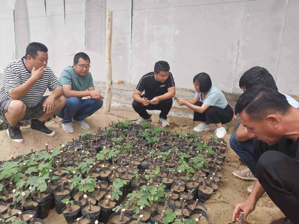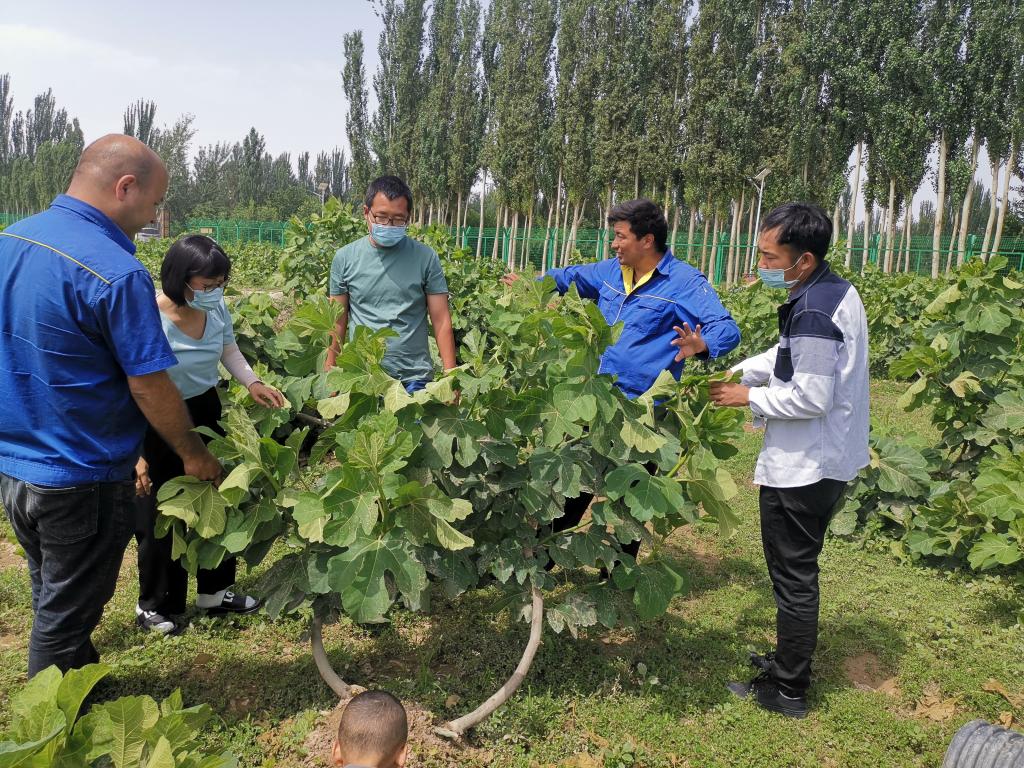 服务团队来到恩钰无花果种植合作社,针对无花果扦插出苗不整齐、苗木瘦弱等问题,提出改善基质透气性、减少基质用量、优化扦插环境等解决方案。开展设施无花果不同树形培养、摘心节位、树体水肥管理等技术指导,并到新定植的200亩露地无花果、蟠桃栽培示范园,针对夏季高温干燥等问题给予技术指导,为当地无花果产业化发展提供科技支持。
