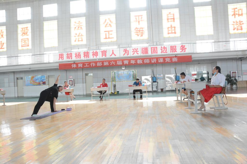 比赛在风雨操场内进行,严谨的课堂设计,生动有趣的讲解,体育教师独一无二的技能展示,一次次将比赛推向高潮。花样跳绳、乒乓球、羽毛球、网球、篮球、排球、健美操、瑜伽、跆拳道、旱地冰球等项目一一展示,老师们每一个动作的完成都展示出他们扎实的基本功和专业的教学素养。充满技巧的花样跳绳不仅抓住了评委的眼光,连场馆内作清洁卫生的环卫阿姨都驻足观看。精妙柔美的瑜伽伴随着缓缓流淌的音乐展开画卷,对生命健康的追求在洒脱曼妙的动作展示中得到完美展现。技艺精湛的跆拳道将胡杨精神和爱国主义教育融入到教学当中,一招一式透出的是中华民族热血男儿的铮铮铁骨和扎根边疆坚强不屈的无尚光荣。