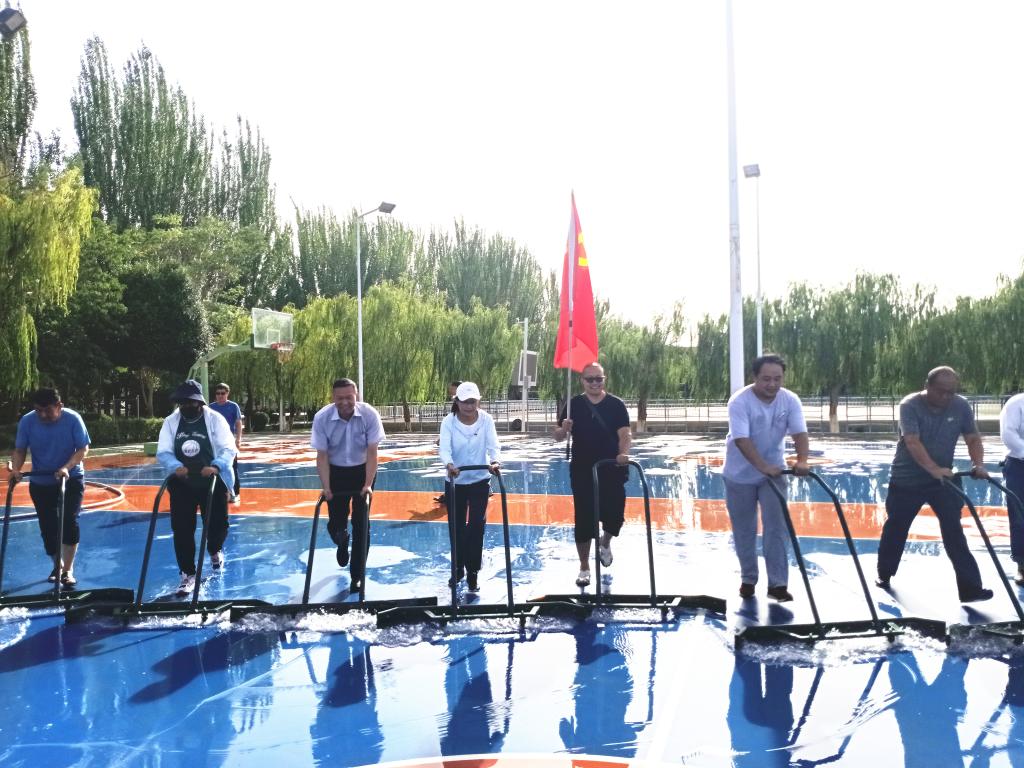 李庆兵老师一边擦着汗一边说:“通过此次主题党日活动,为在校师生们提供干净整洁的体育锻炼场所,我们内心无比喜悦。”